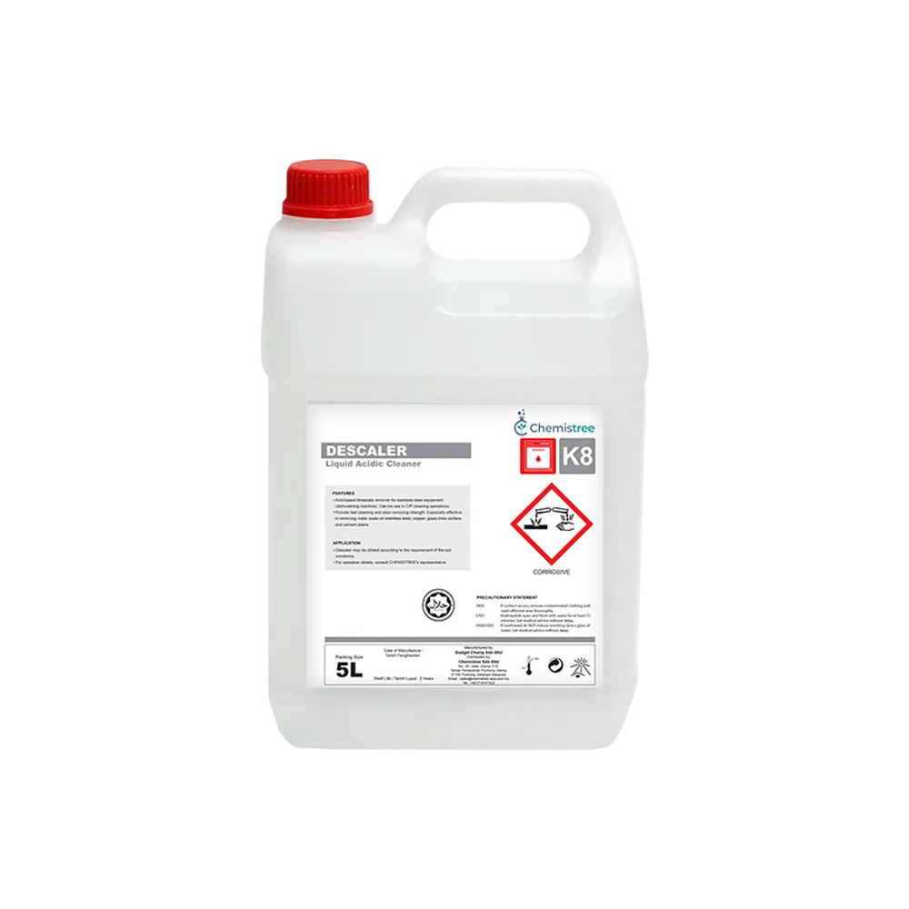 Acid-based limescale remover for stainless steel equipment (dishwashing machine). Can be use in CIP cleaning operations.