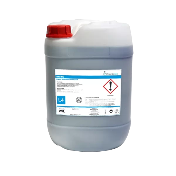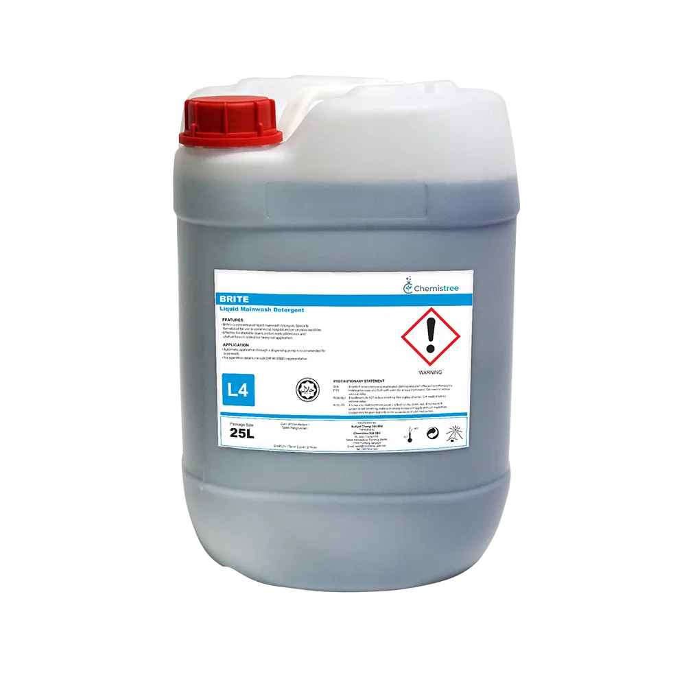 Brite is a concentrated liquid mainwash detergent and brightener. Specially formulated for use in commercial, hospital and on premise laundries.