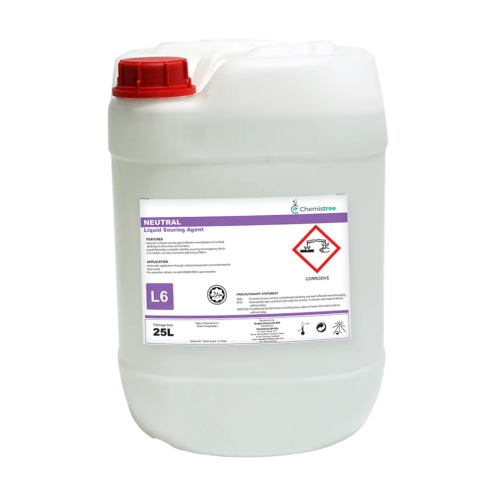 Neutral is a liquid souring agent. Effective neutralisation of residual alkalinity in rinse water and on fabric.